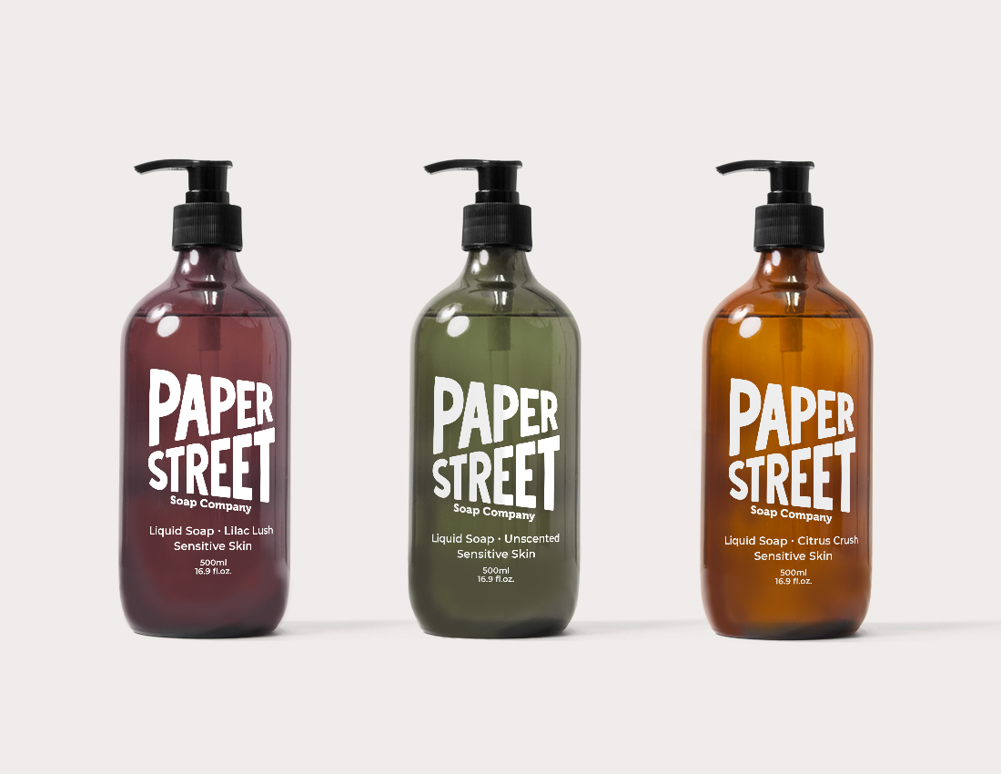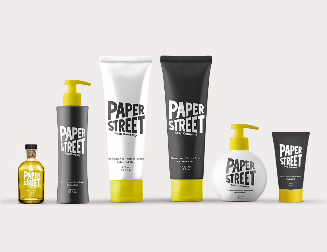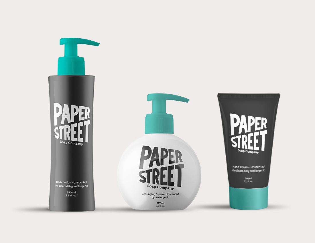 Paper Street Soap Company is a modern producer of beauty products that target those with sensitive skin. Most of the products produced are unscented and hypoallergenic. While Jeremy created the logo design, I created the packaging design. Together we created a modern lineup of soaps, shampoos and creams that will stand out on a busy and loud shelf. Since the company tends to use unscented and natural formulas, we wanted a clean design that would match this nonsense brand.